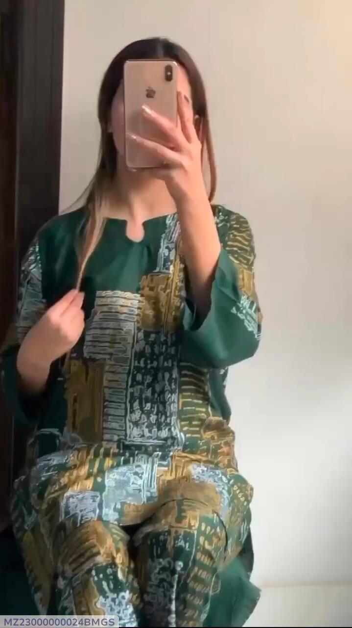 2 Pcs Women's Stitched Linen Block Printed Shirt And Trouser